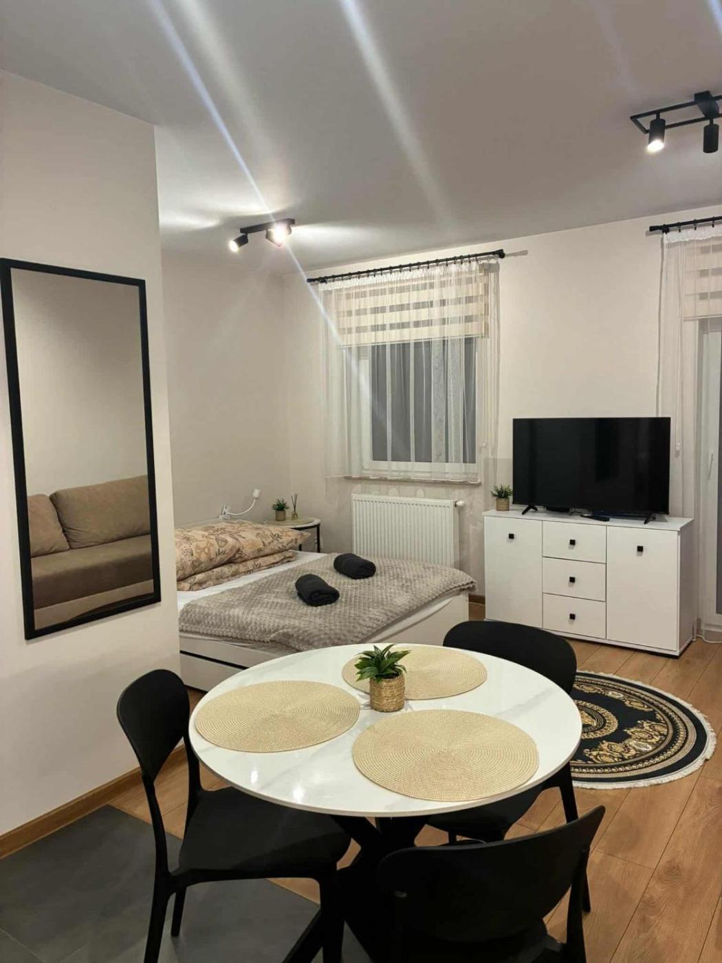 Apartament z 1 sypialnią. In the well-fitted kitchen, guests will find a stovetop, a refrigerator, a dishwasher and kitchenware. The apartment has a washing machine, a private entrance, soundproof walls as well as a terrace with garden views. The unit has 2 beds. Apartament - 4 osobowy. Powierzchnia pokoju ok.: 30 mkw.