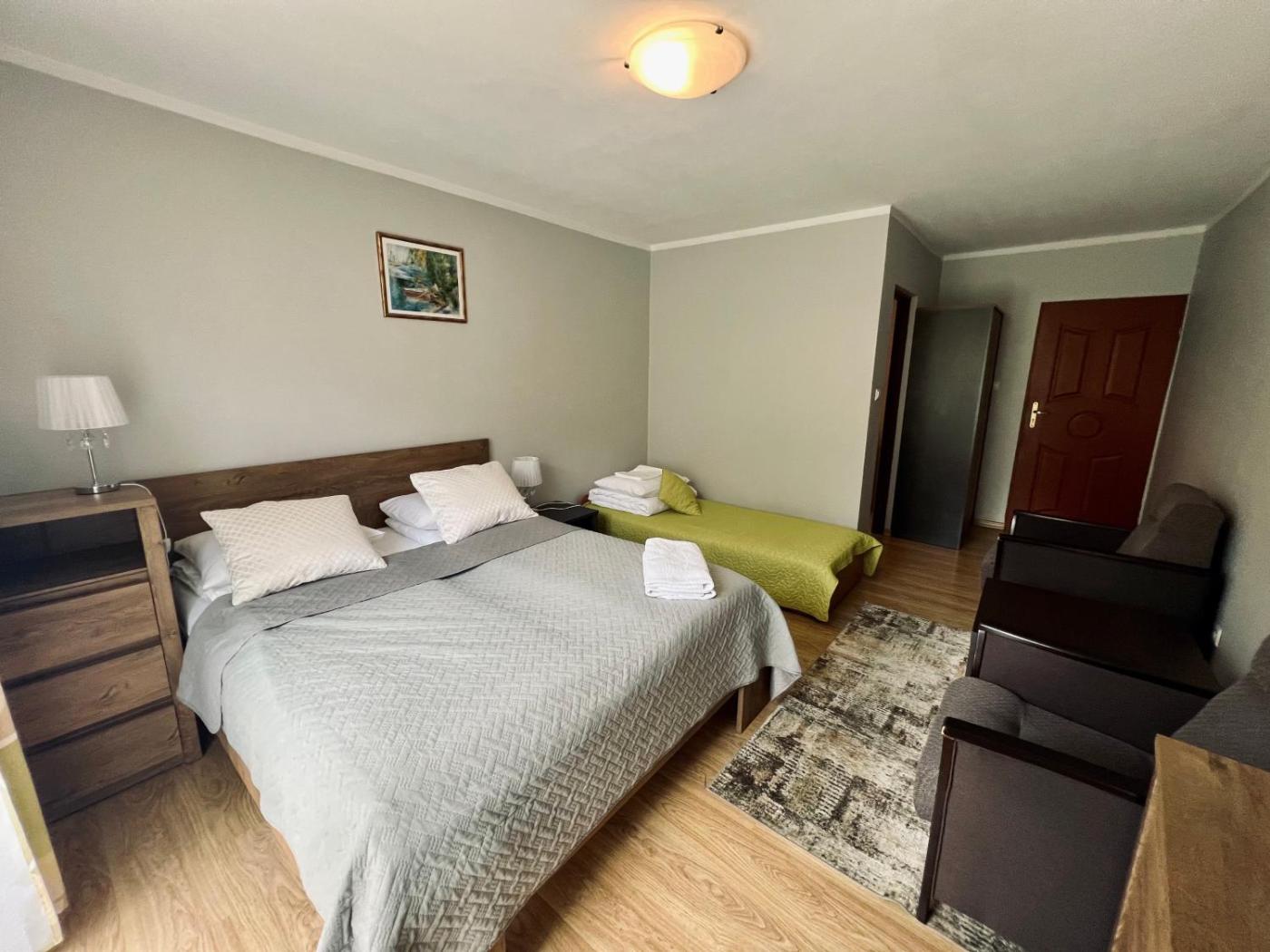 Pokój Czteroosobowy. The quadruple room features a seating area, a wardrobe, as well as a private bathroom boasting a shower. This quadruple room offers heating and a flat-screen TV. The unit has 4 beds. Pokój Czteroosobowy - 4 osobowy. Powierzchnia pokoju ok.: 30 mkw. ;